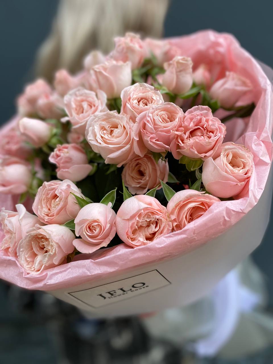 Одиннадцать кустовых роз с густыми многолепестковыми бутонами в нежно-розовой гамме. Каждая ветка раскрывается несколькими головками, создавая пышную объемную форму. Для тех, кто любит выразительные букеты с характером.