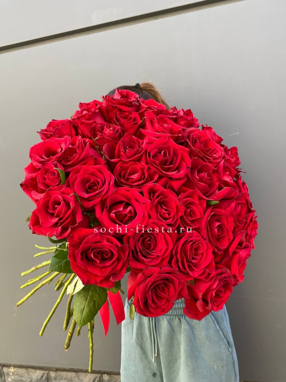 35 красных роз под ленту.