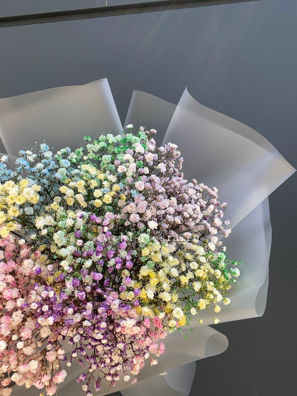 7 радужных голландских гипсофил, лента, комбинированная упаковка.