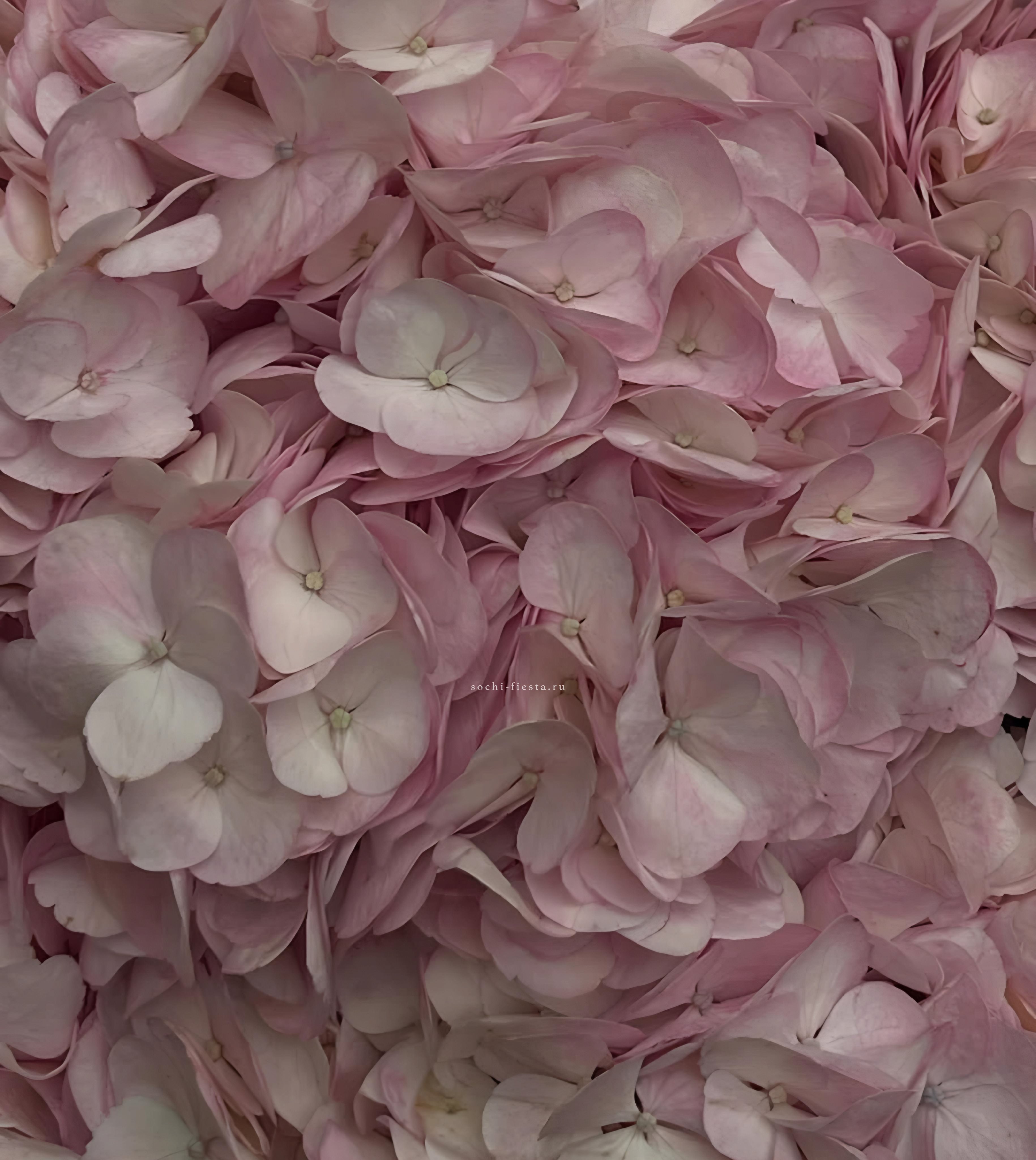 Двадцать пять соцветий гортензий разных оттенков формируют пышное облако с естественной игрой цвета. Каждая головка раскрывается по-своему, создавая живую фактуру без четких границ между тонами.