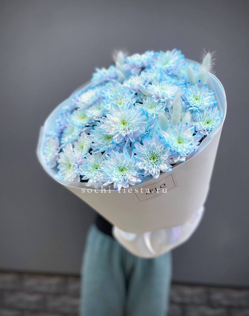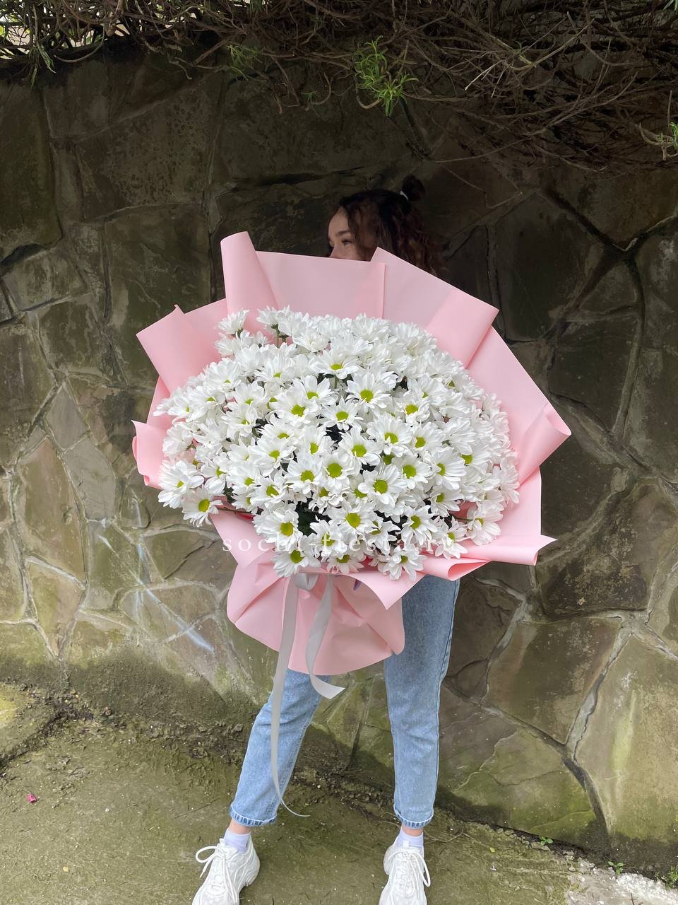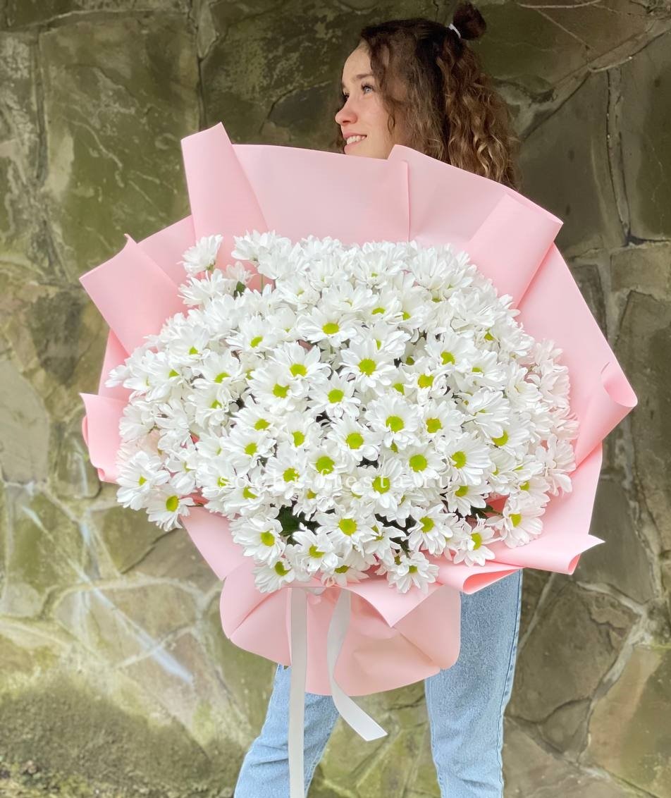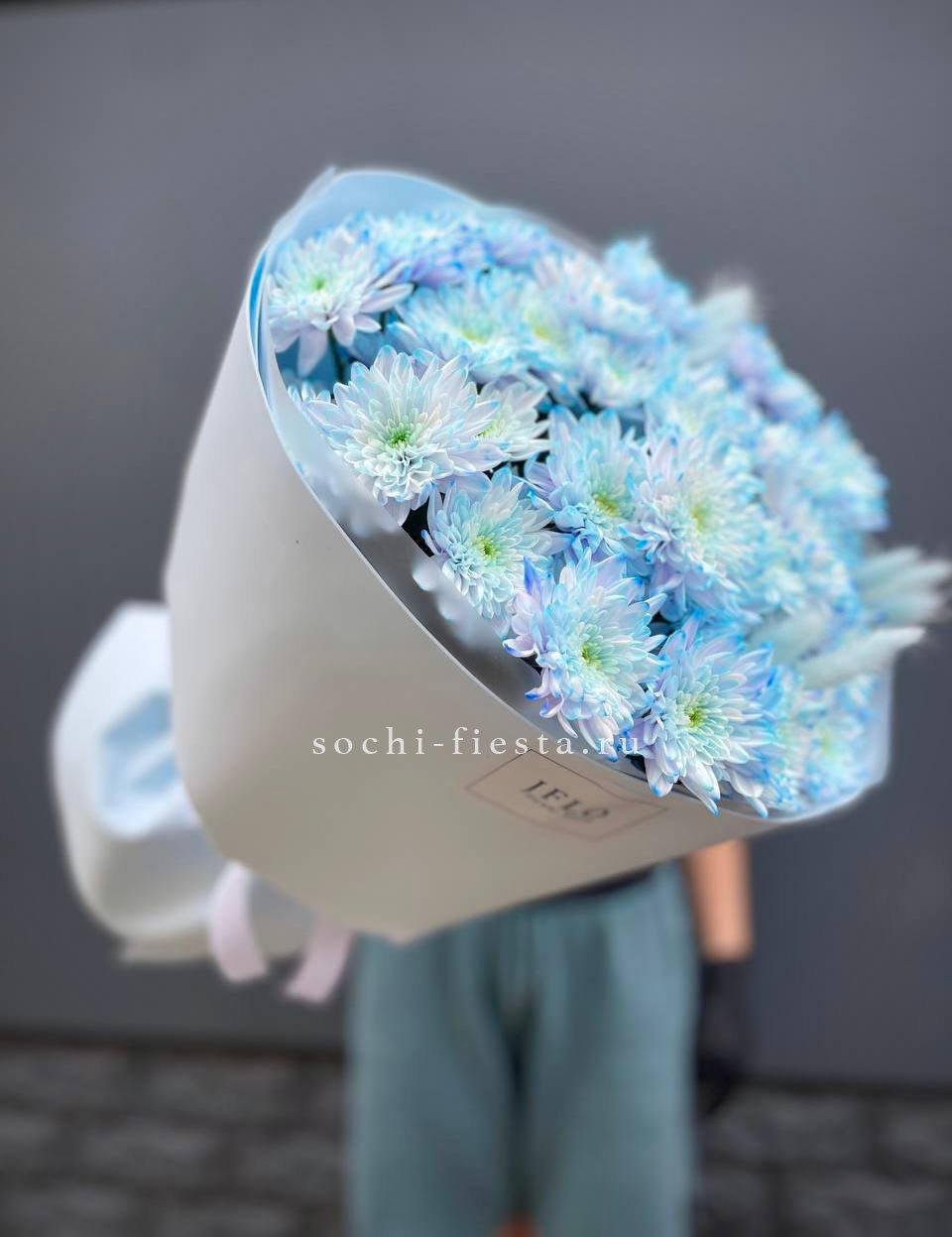 хризантема одноголовая - 9 шт., лента, дизайнерская упаковка.