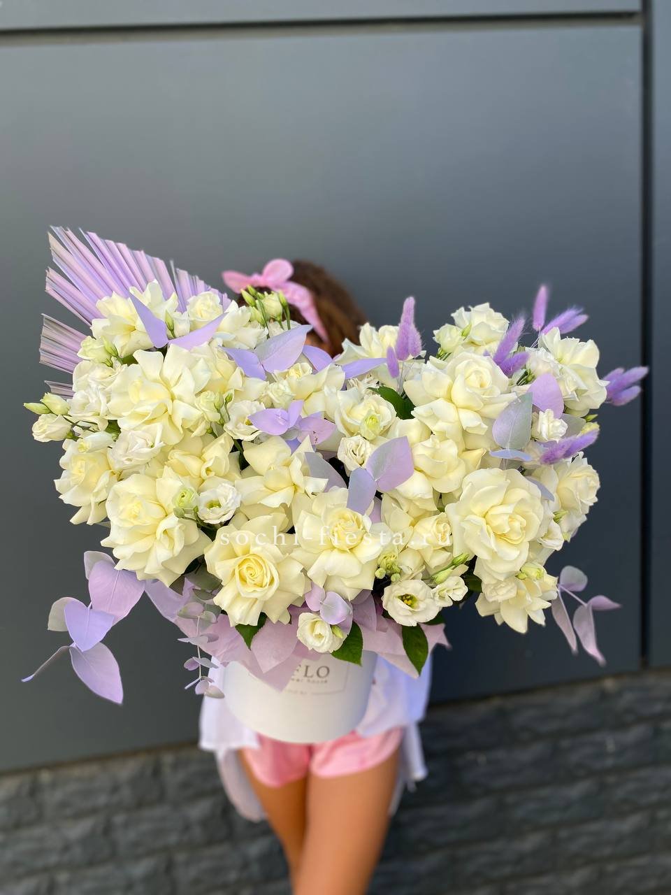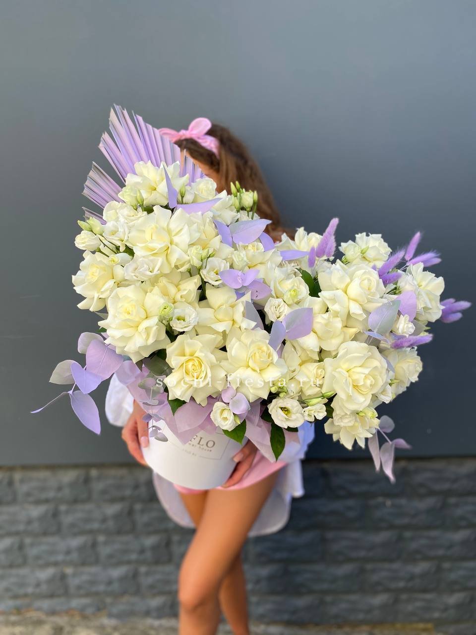 бокс 20D, белая французская роза, эустома, эвкалипт.