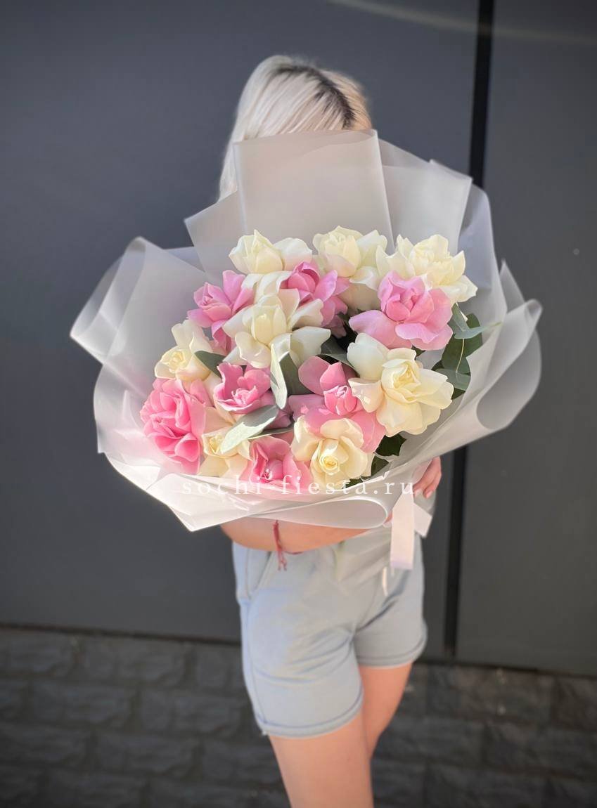 15 бело-розовых роз