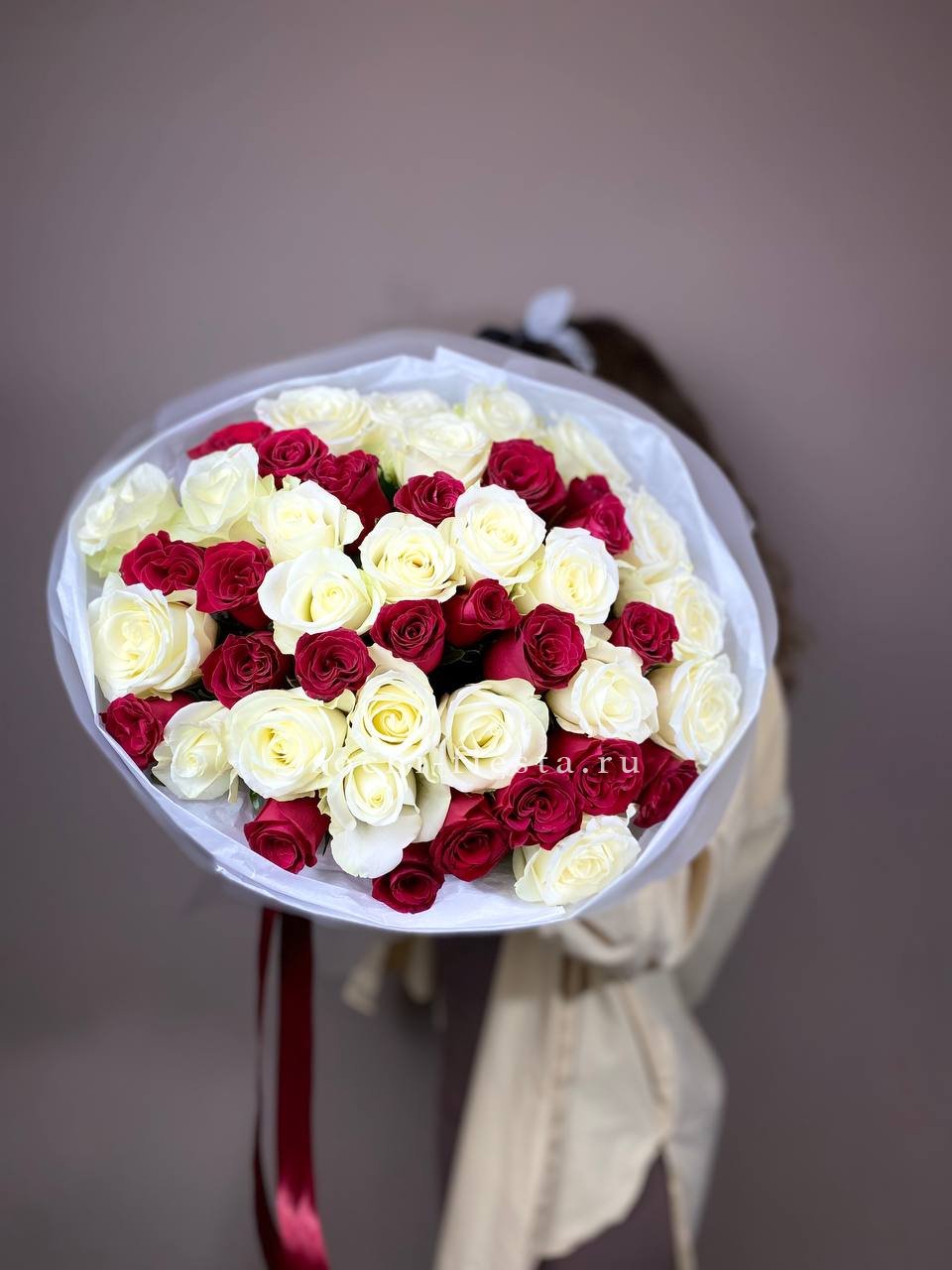 Для заказа товара "Букет из красных белых 45 роз" с доставкой в Барнауле нажмите в корзину