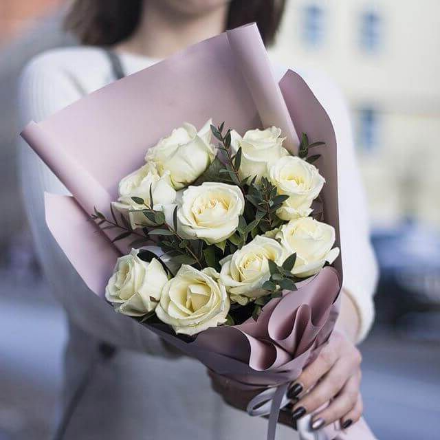 21 белая роза, лента, упаковка на выбор.