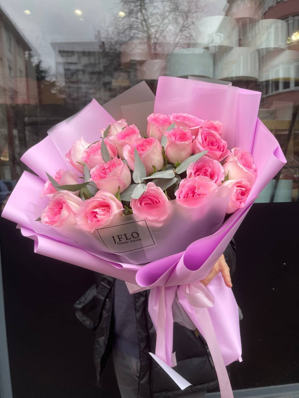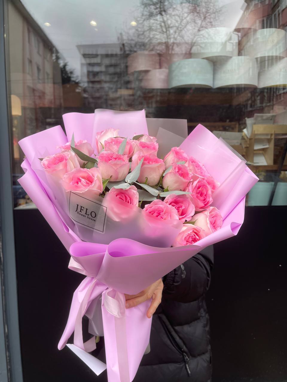 Сто одна роза в охапке создаёт впечатление розового водопада. Масштабная композиция заполняет пространство и становится центром внимания в любой обстановке.