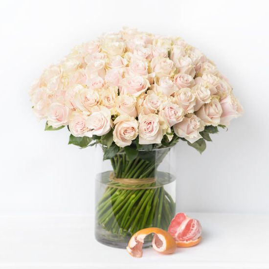 Двадцать пять бутонов кремового оттенка собраны в классический монобукет. Мягкая палитра и округлая форма создают спокойное впечатление без лишней декоративности.