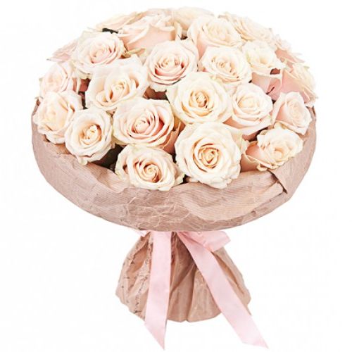 25 кремовых роз, лента, упаковка на выбор.
