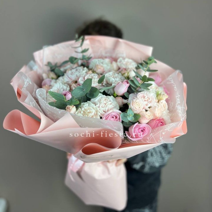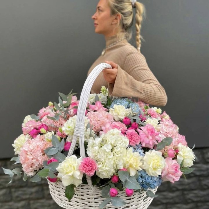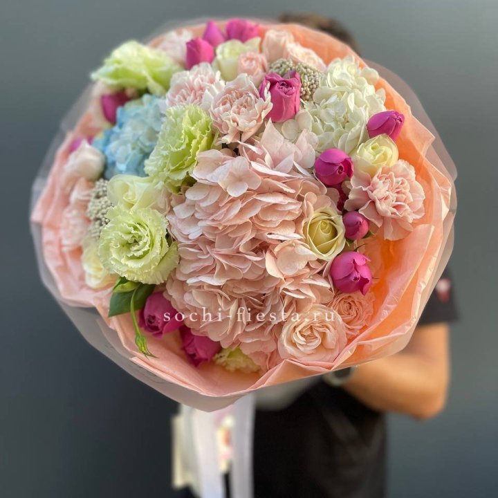Летние семейные торжества, дни рождения, юбилеи — основной поток летних заказов. Флорист знает клиентов лично, часто предлагает сезонный акцент к знакомому формату: пионы к обычному розовому букету, гортензия к миксу с эвкалиптом.